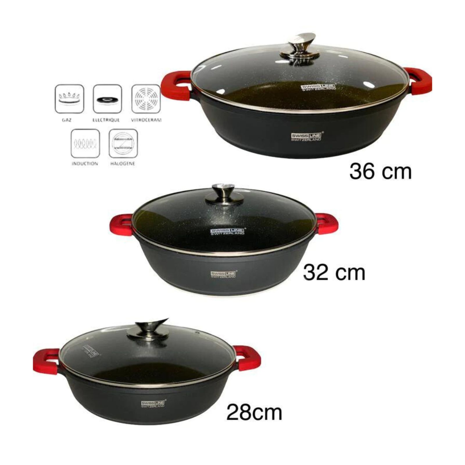 Cacerola Baja Revestida de Mármol Swiss Line – Revestimiento de Mármol – Varios tamaños