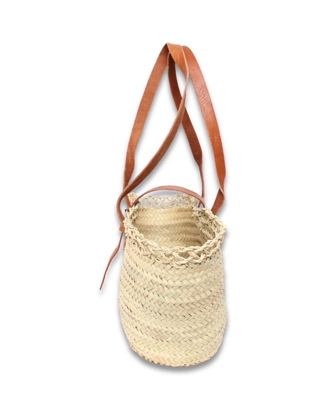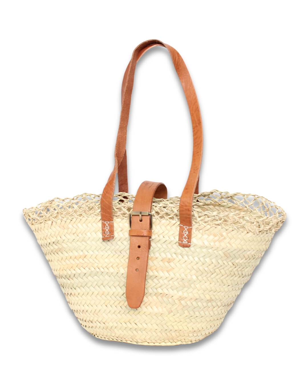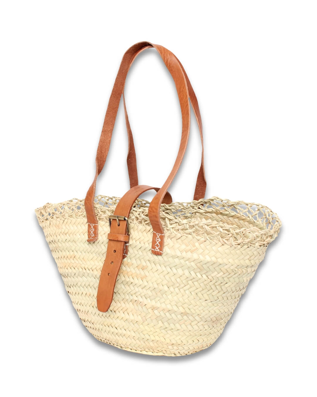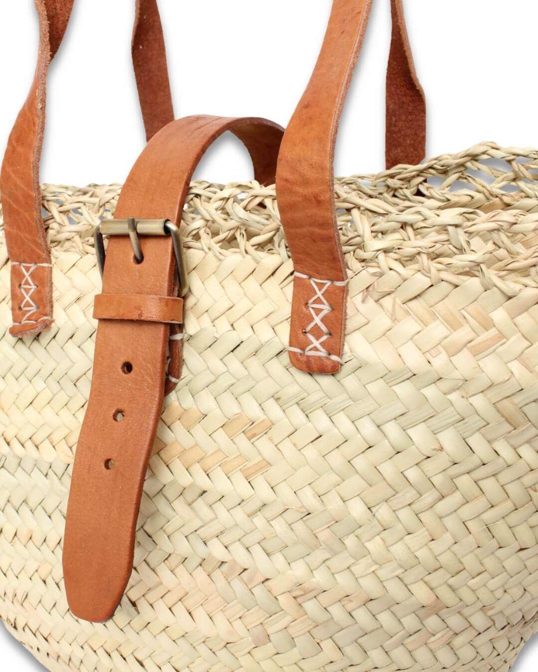Capazo de Palma Artesanal con Cierre Hebilla y Asas de Piel