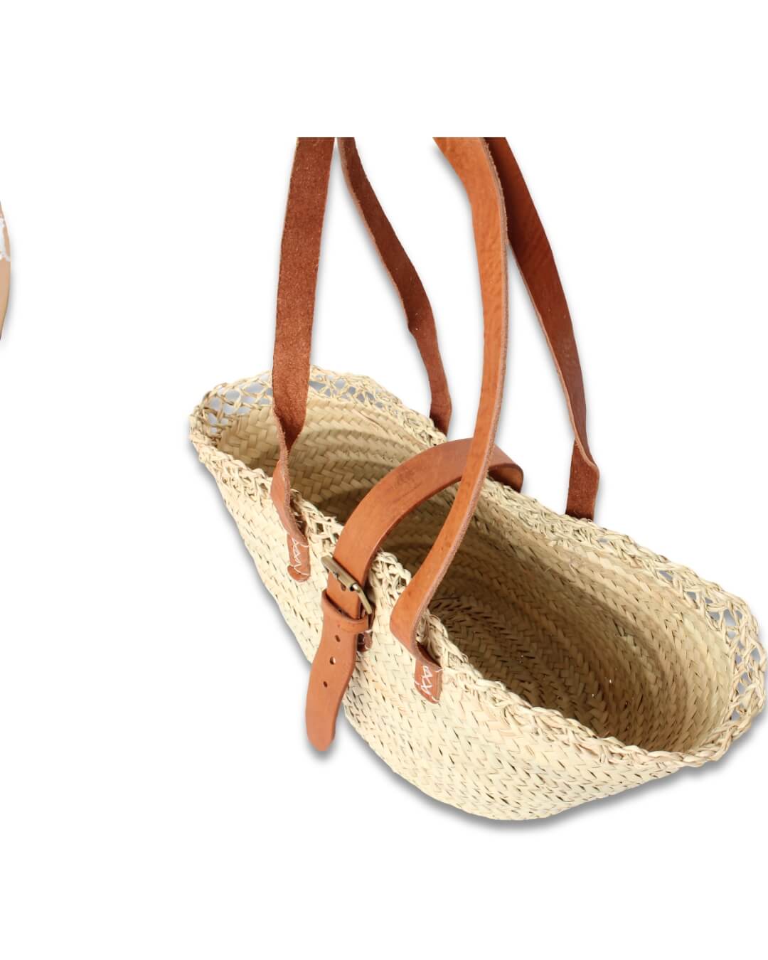 • 🧵 Material: Palma natural y piel auténtica