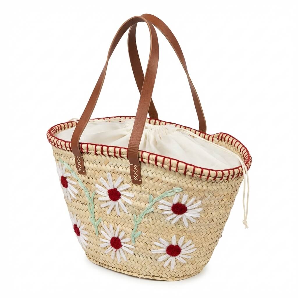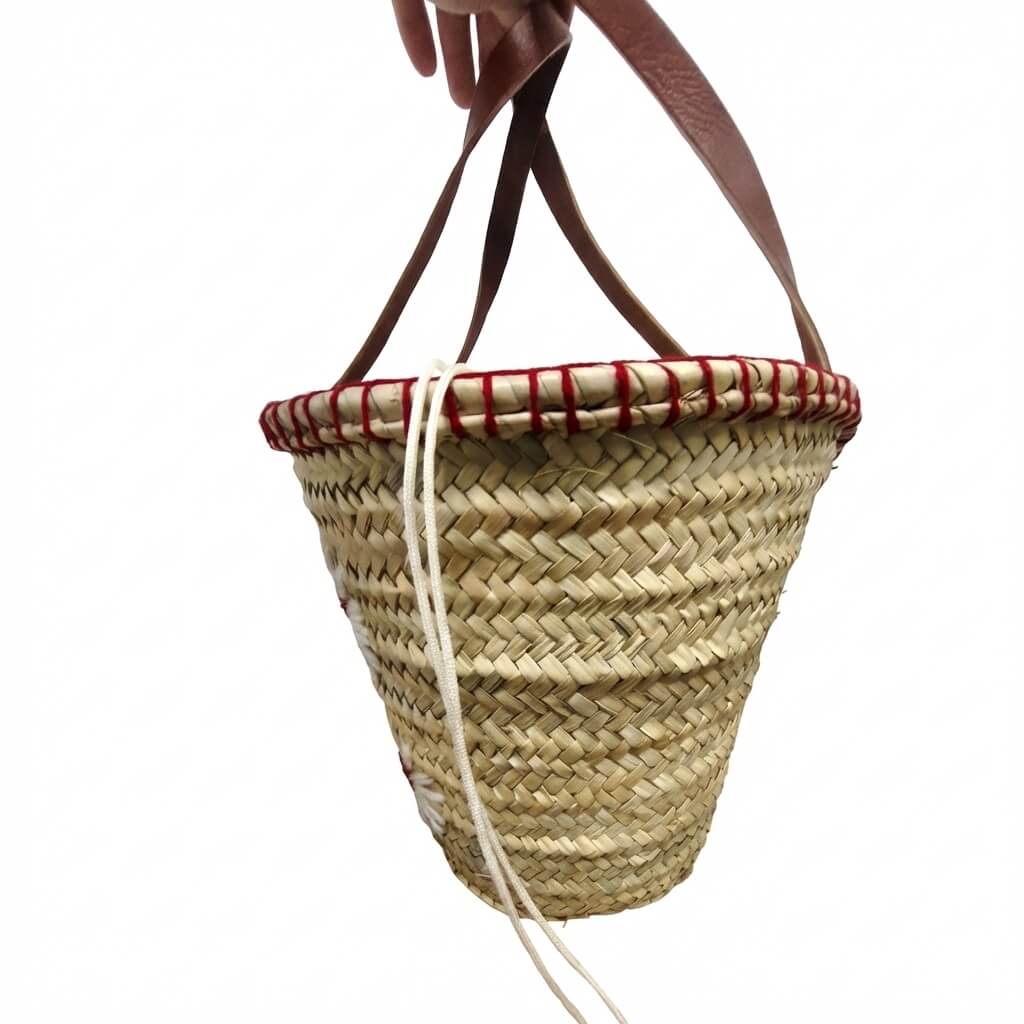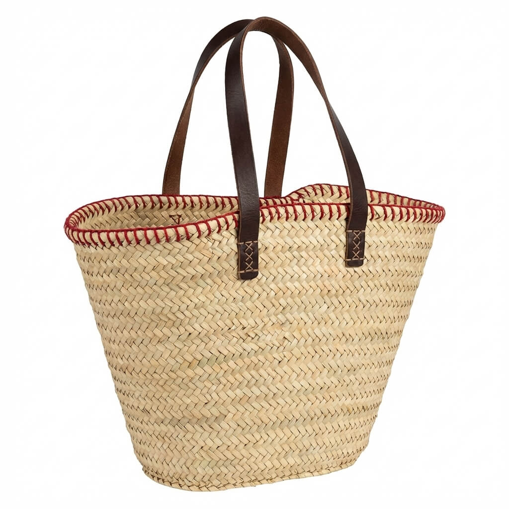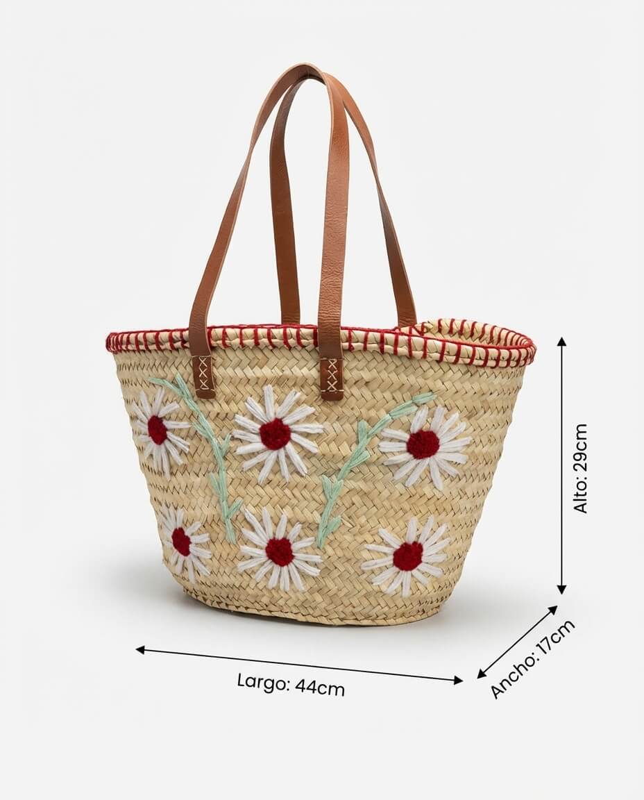 • Material: capazo de palma y asas de piel