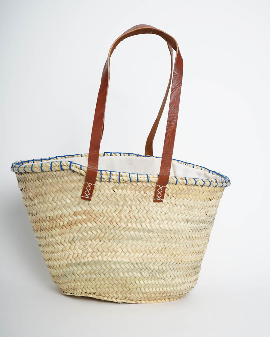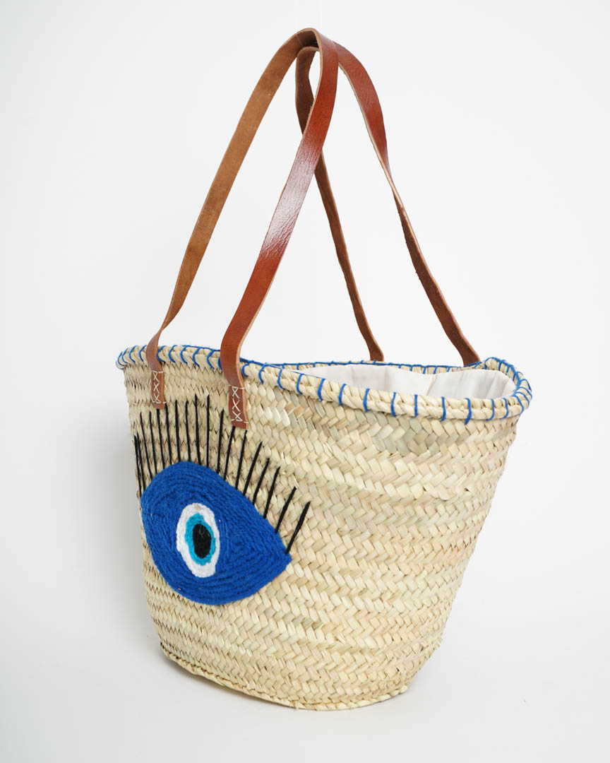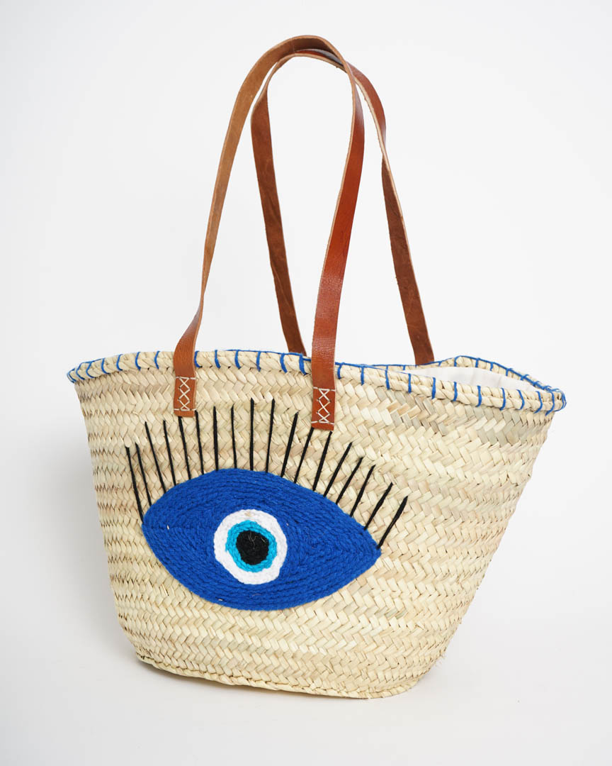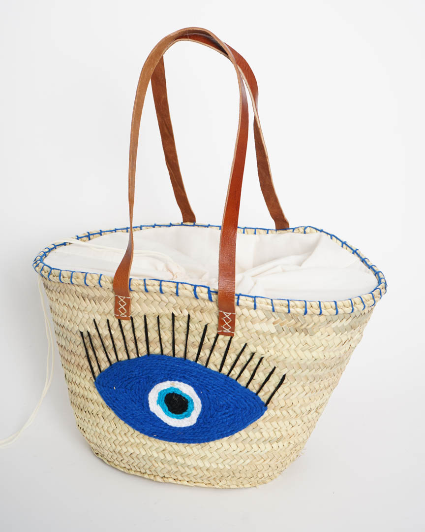 Capazo de Playa Ojo Turco Azul | Palma Natural y Asas de Piel