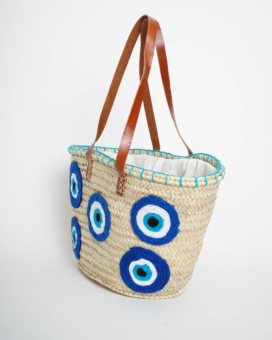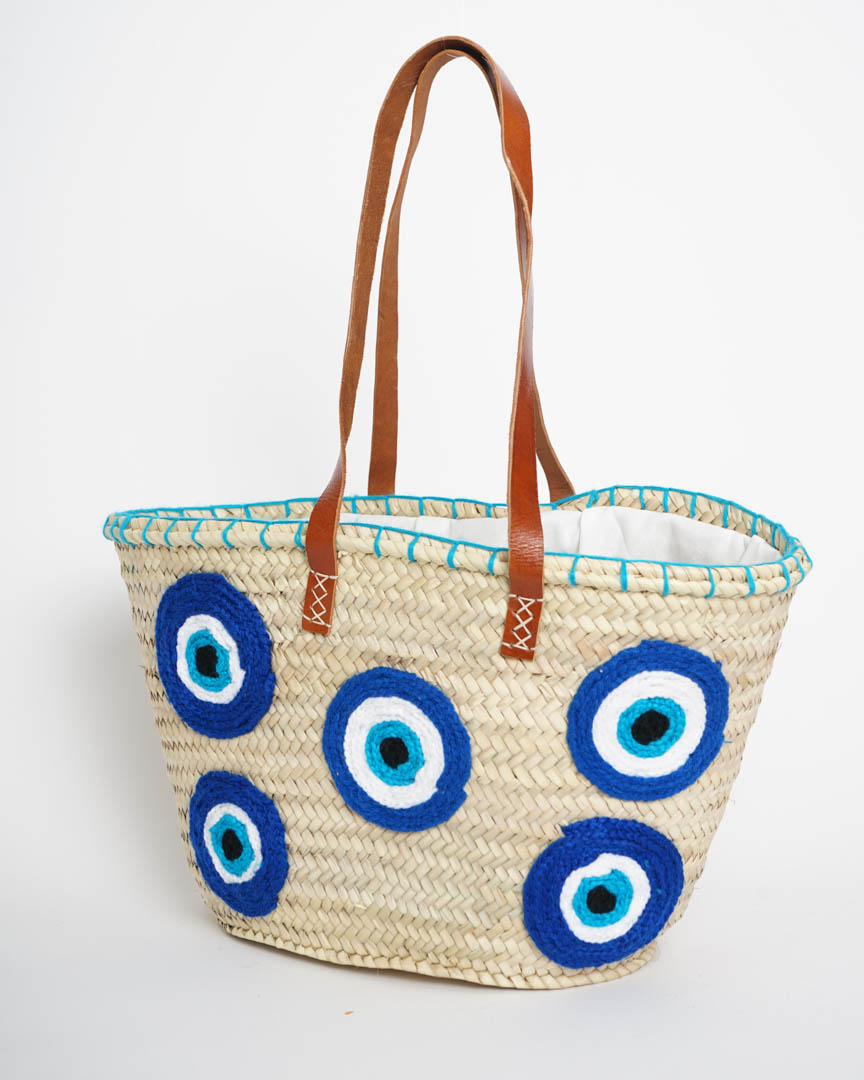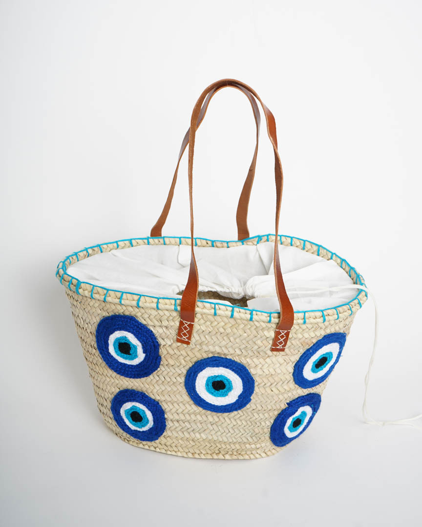 Capazo Ojo Turco de Palma Natural y Lana – Asa de Piel