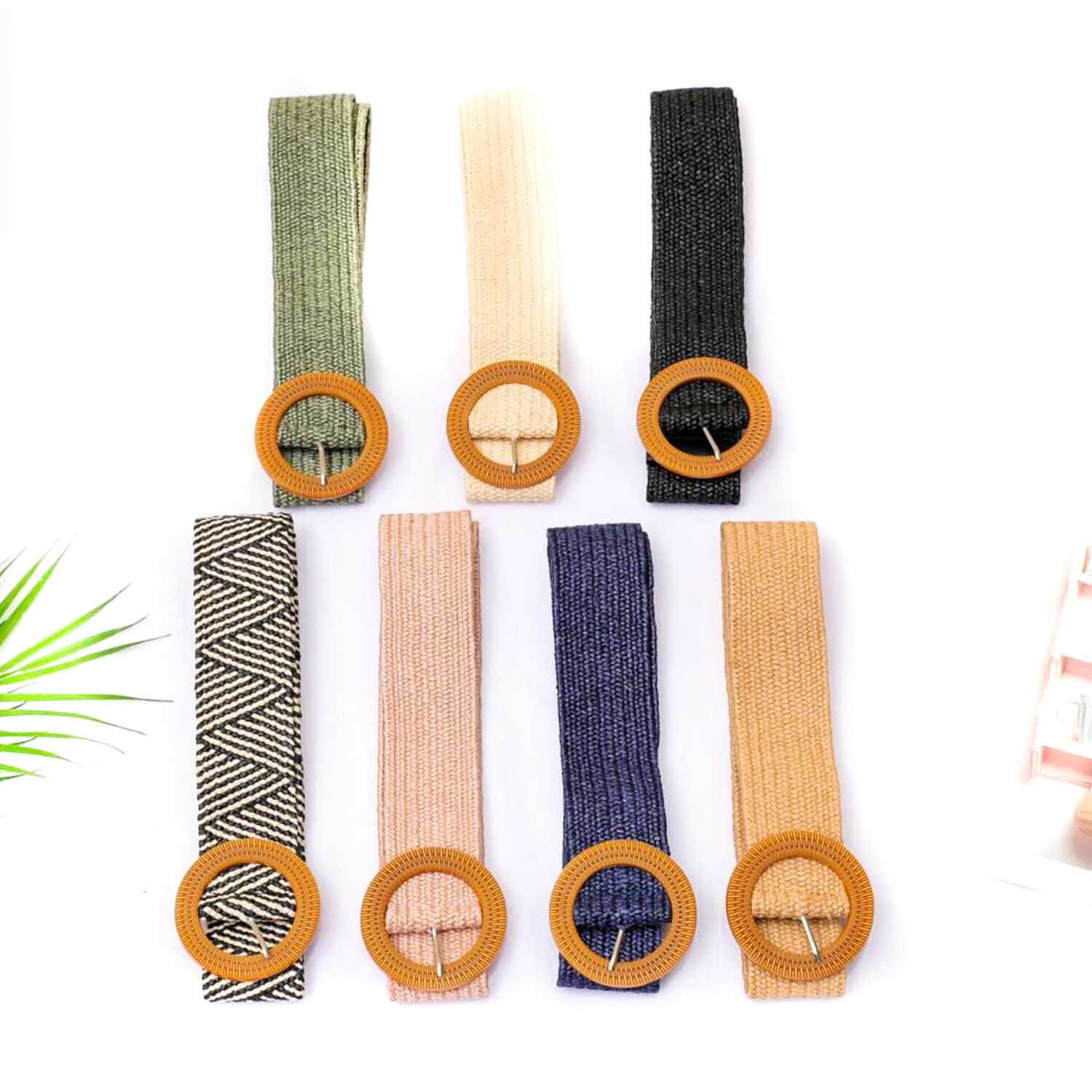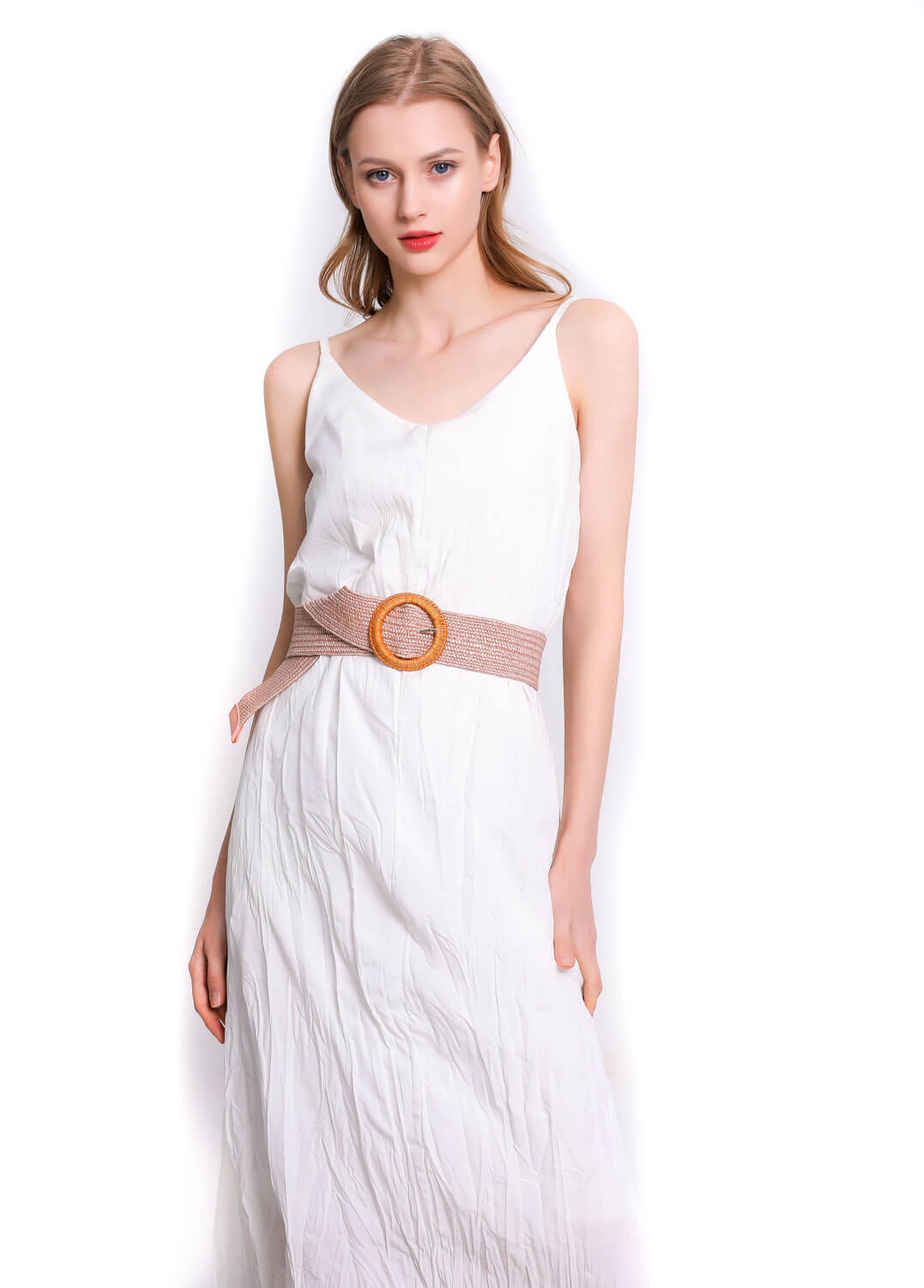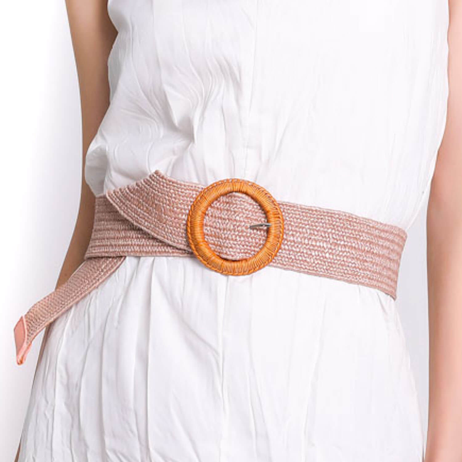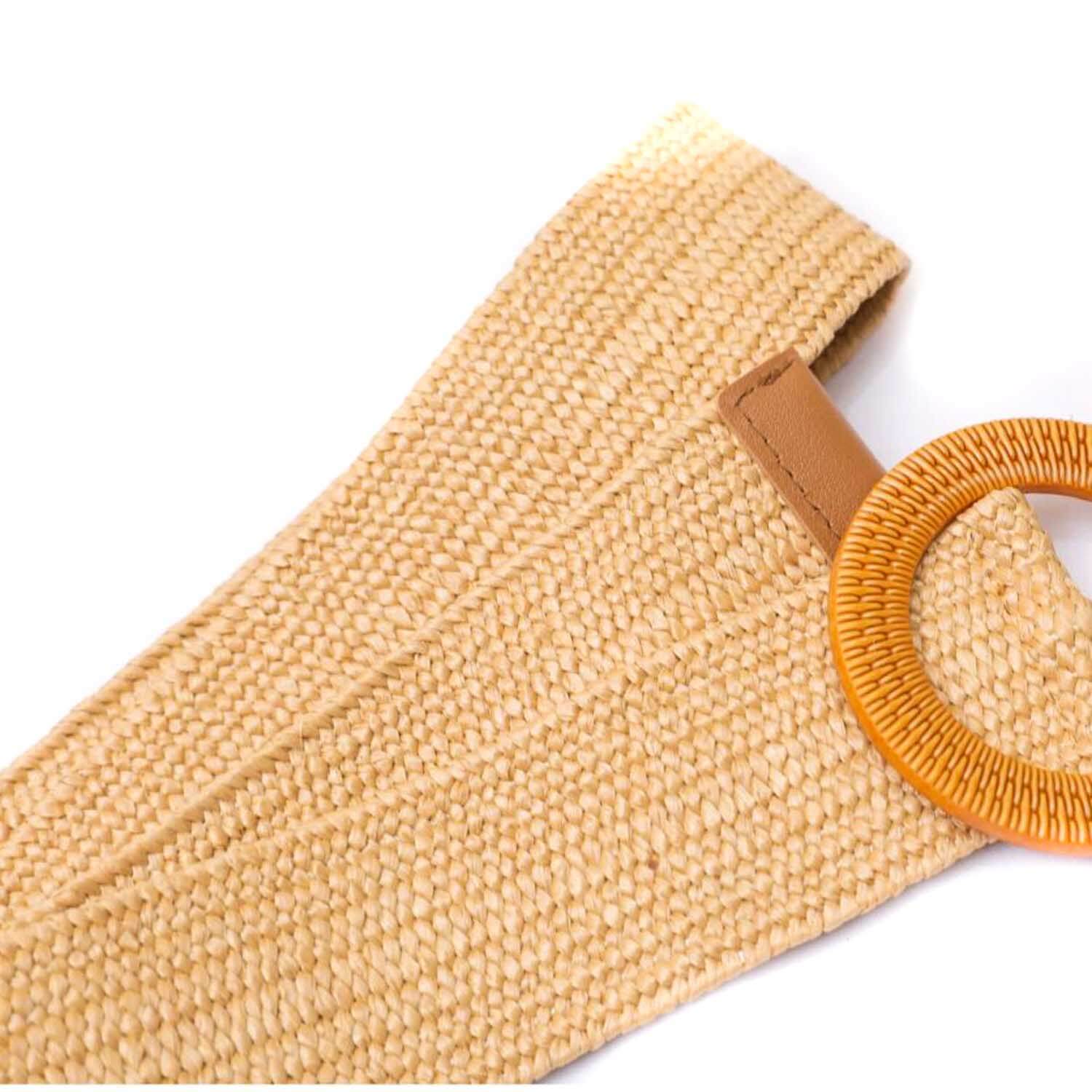Cinturón Rafia Hebilla Redonda Madera