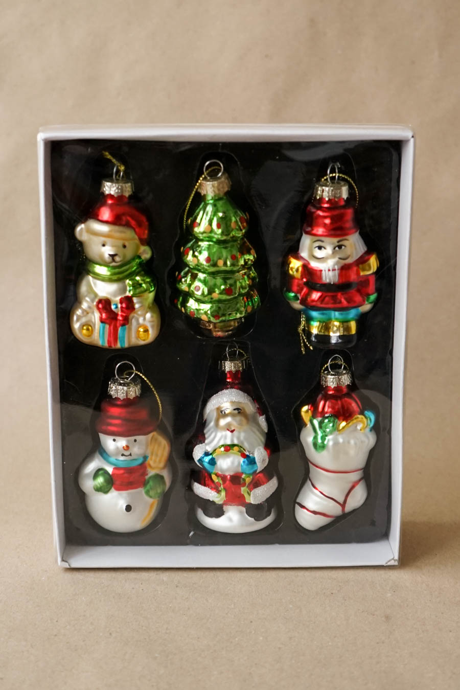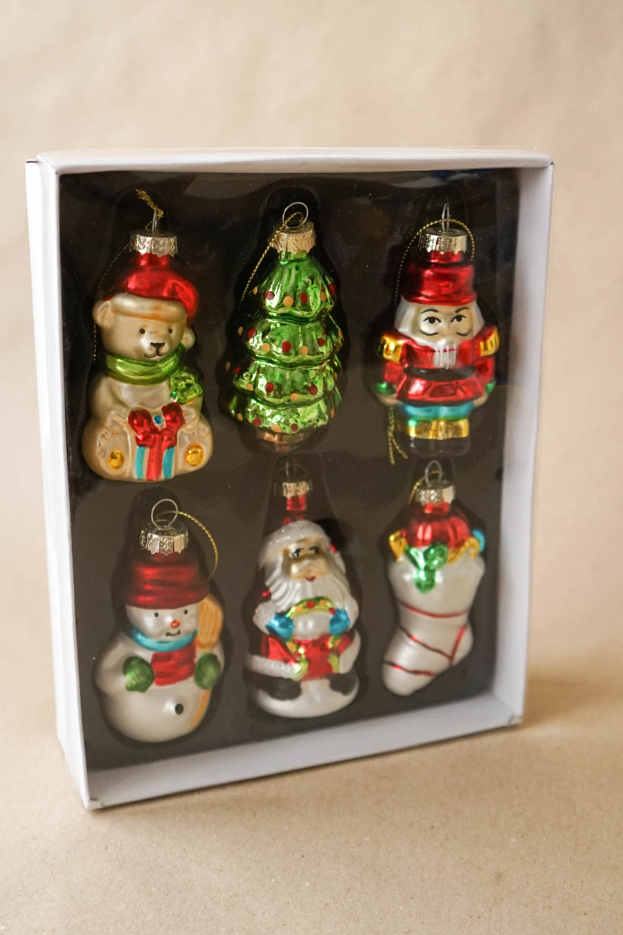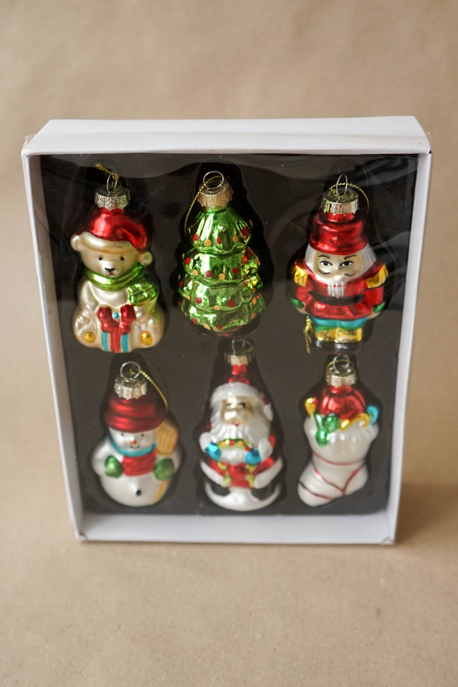 - Caja de colgantes decorativos para árboles con formas navideñas (6 bolas por caja).
