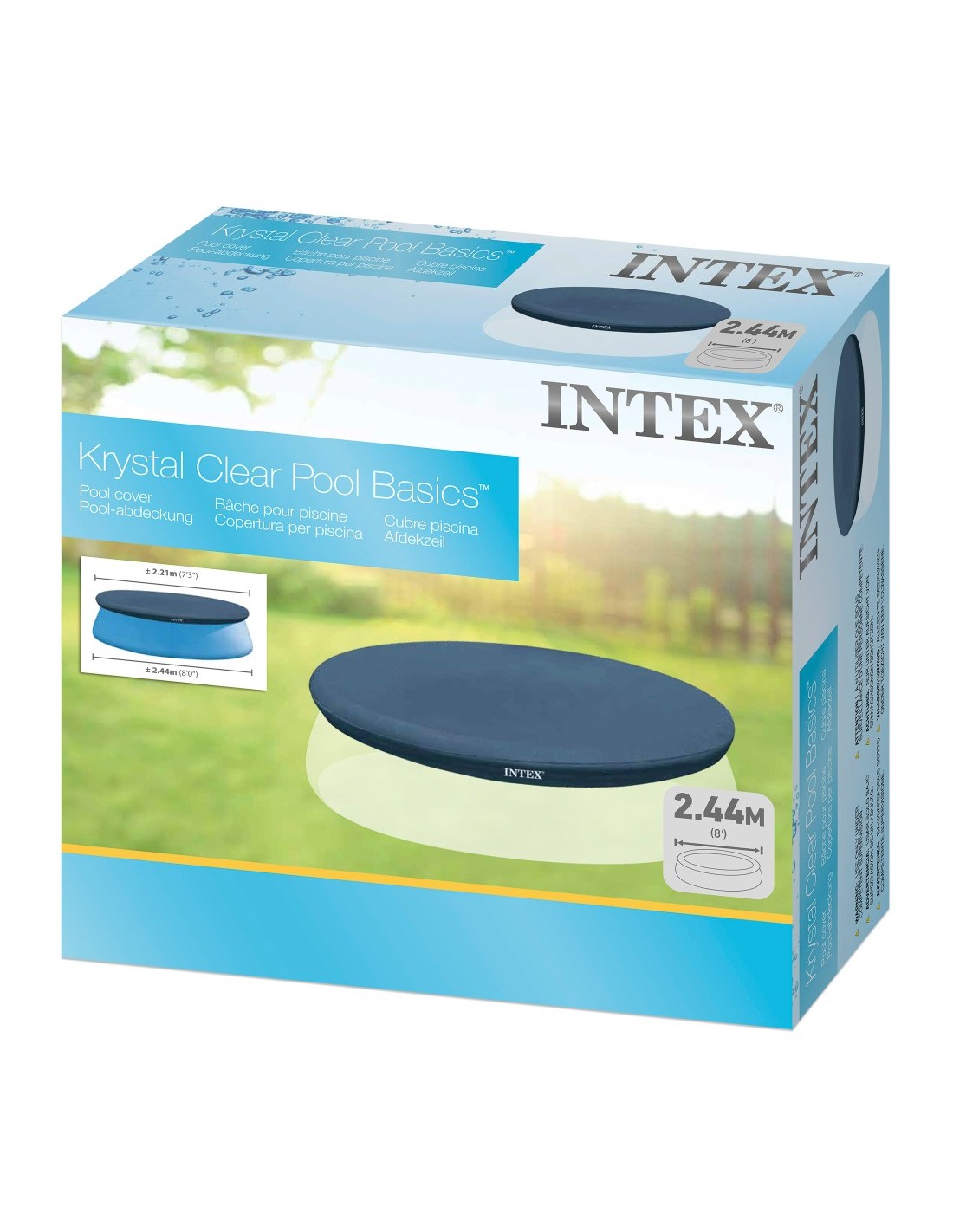El cobertor INTEX adecuado para piscinas hinchables de la línea Easy Set de 244 cm es la solución más eficaz para mantener el agua de tu piscina libre de hojas, plumas, insectos y otras partículas que la ensucien cuando no hay nadie bañándose.