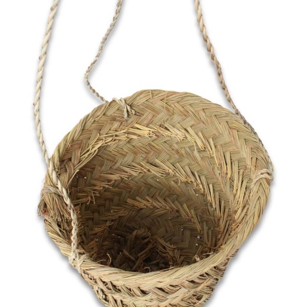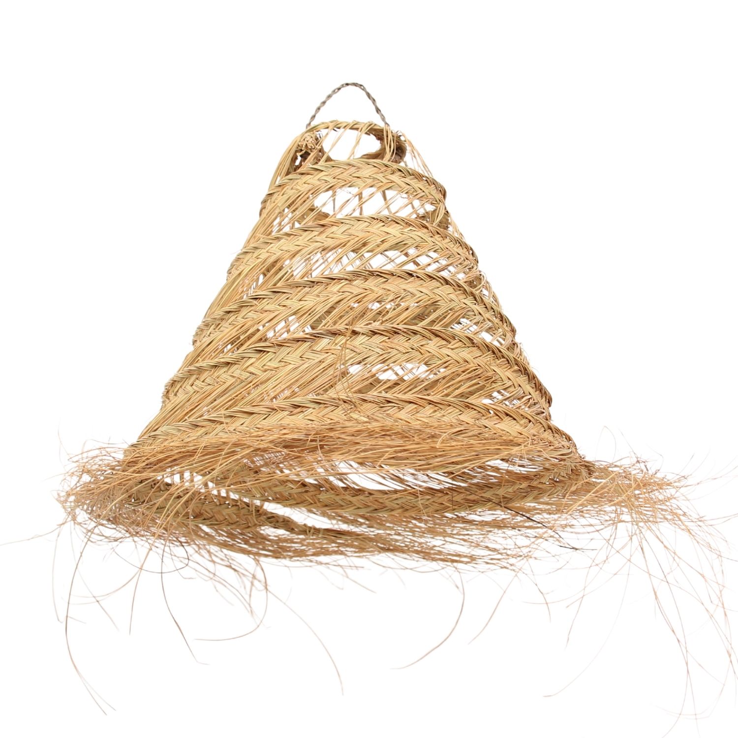 • Fabricación artesanal con hojas de palma natural trenzada. Forma cónica.