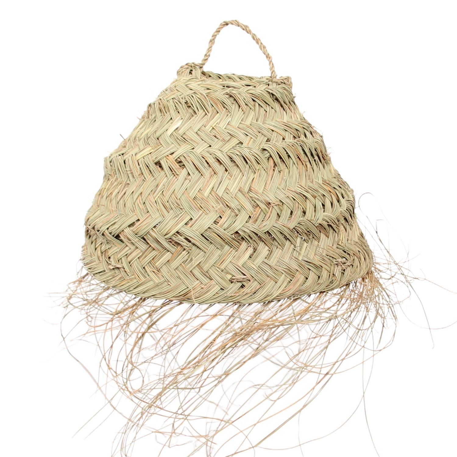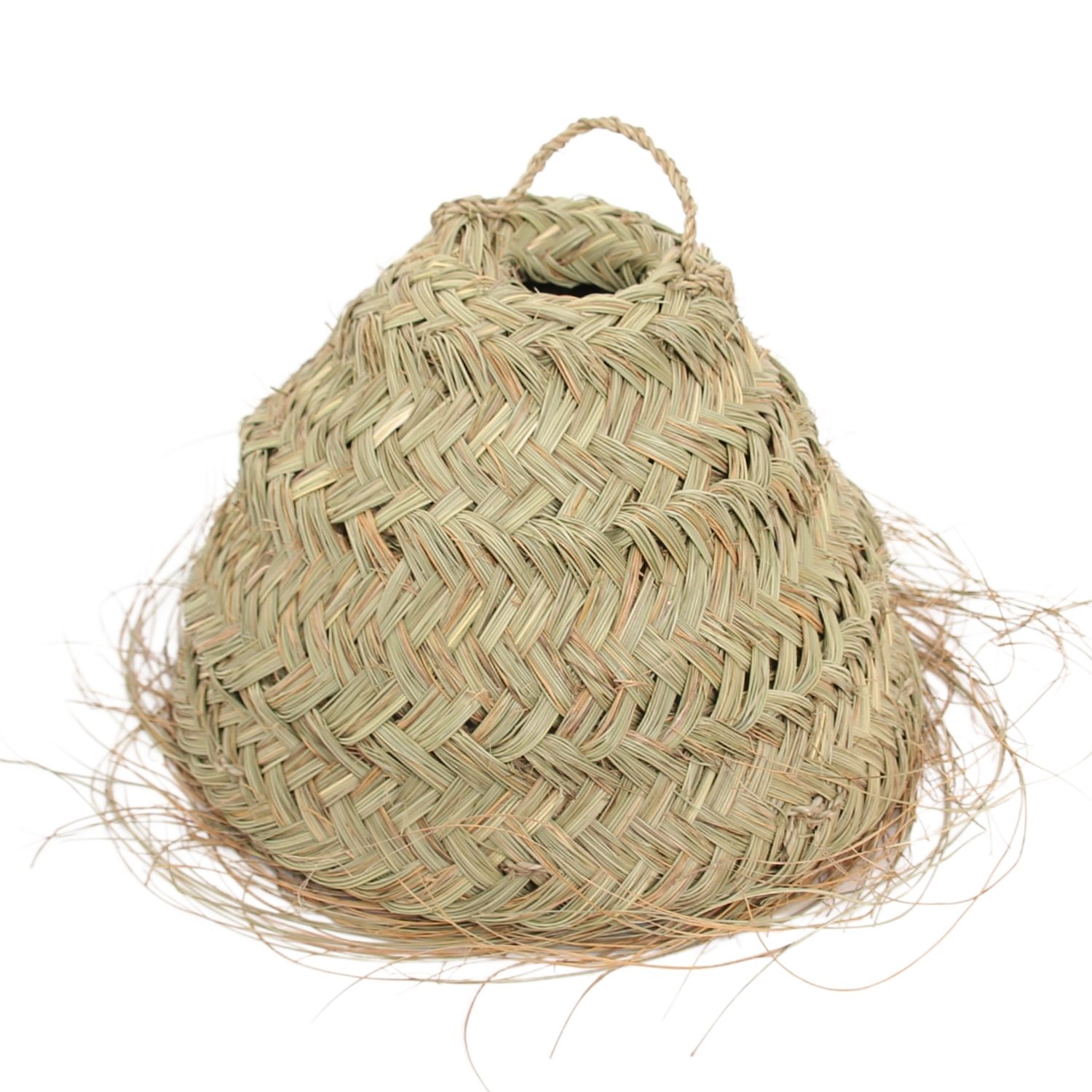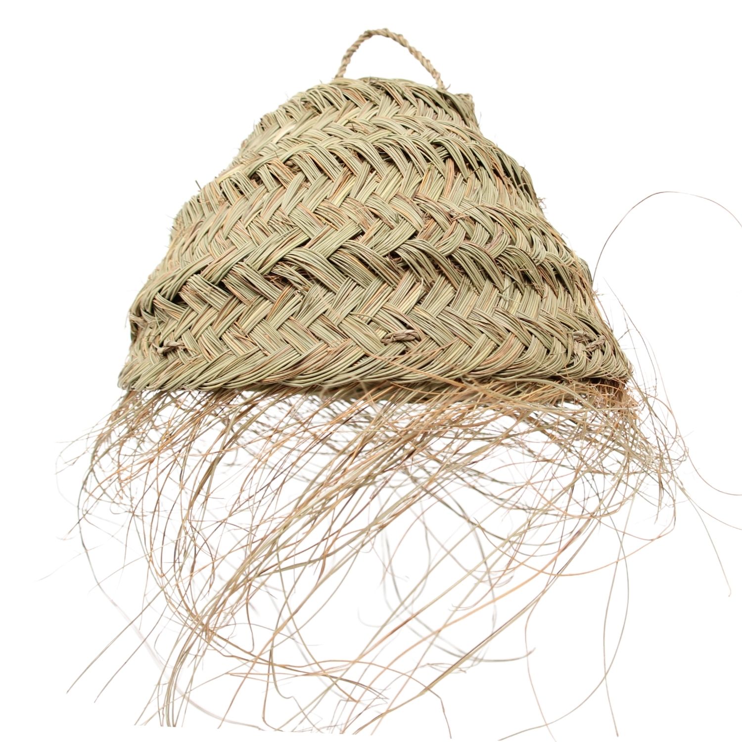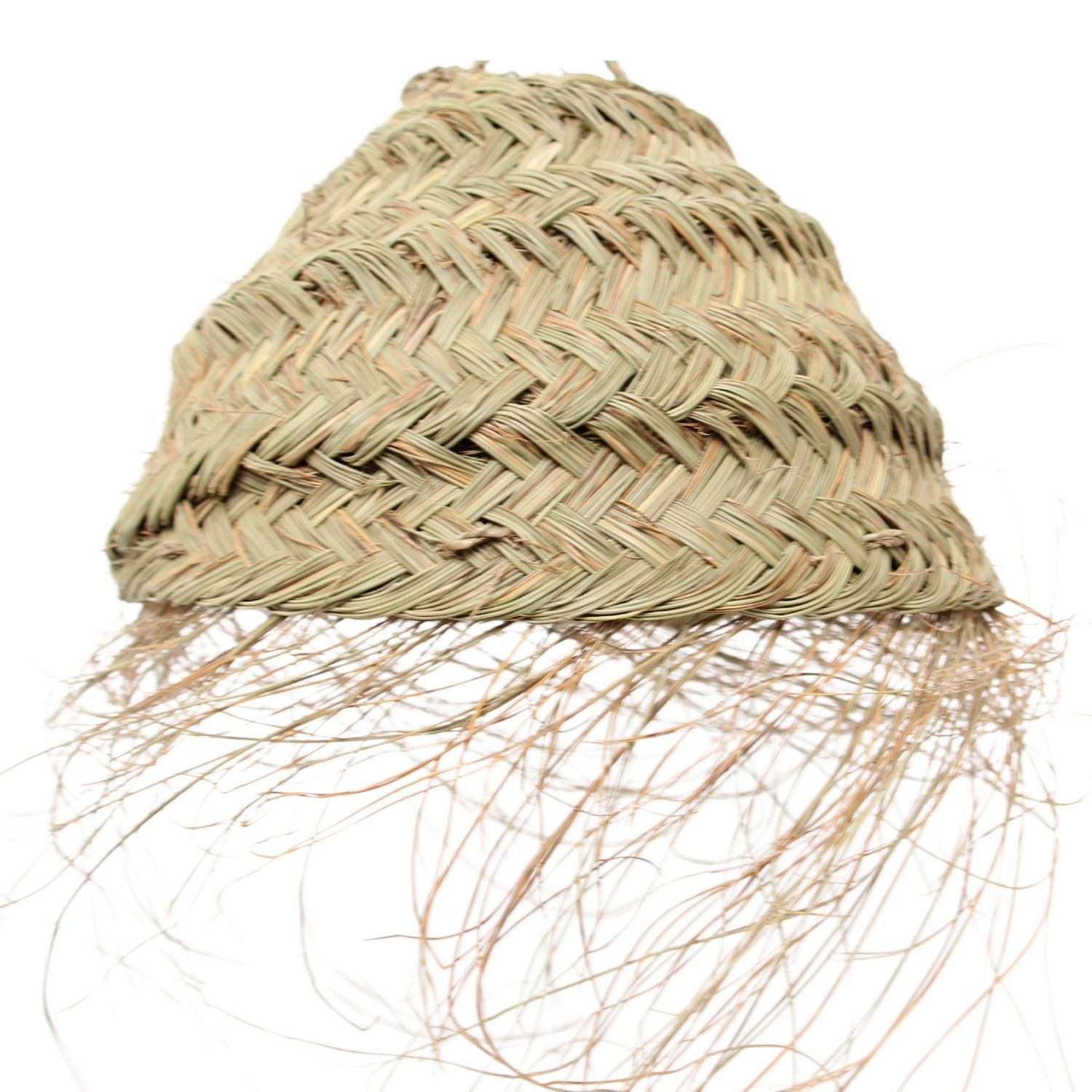• Fabricación artesanal con hojas de palma natural trenzada. Forma cónica.