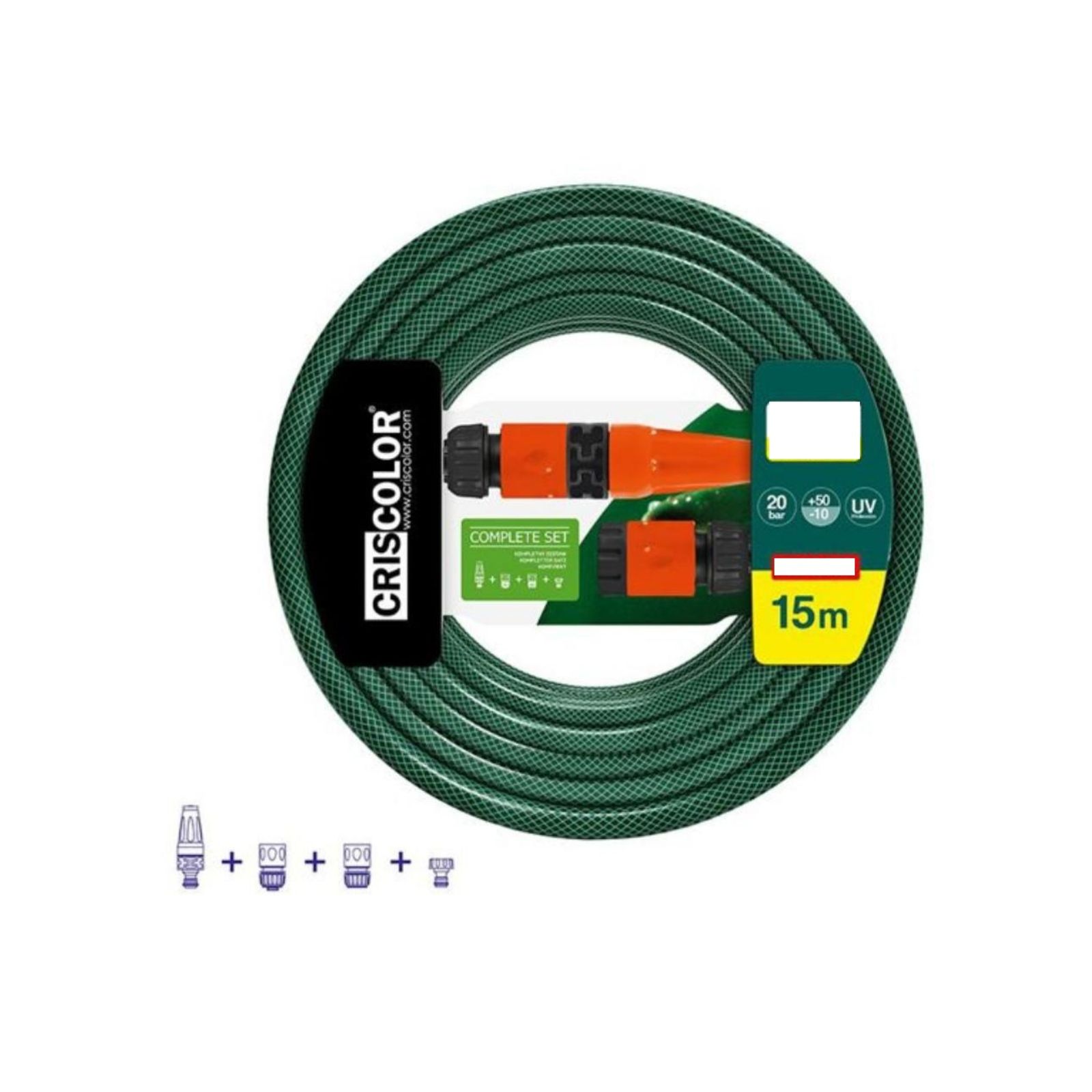 Manguera de Jardín CrisColor – Set de Manguera de 15 metros 1/2