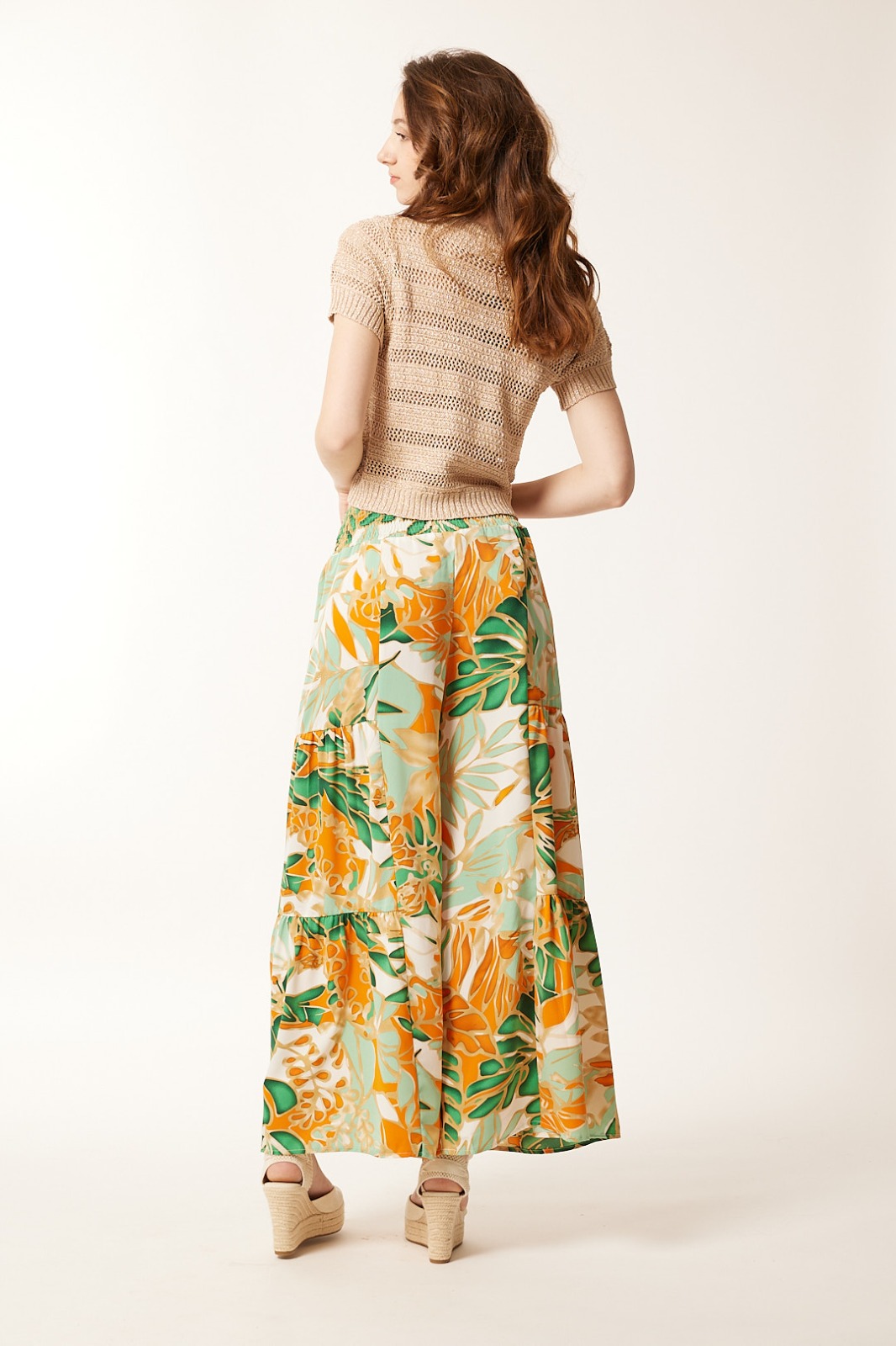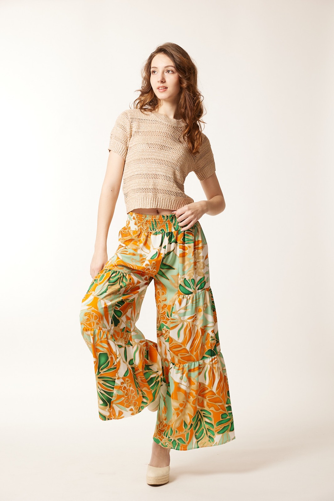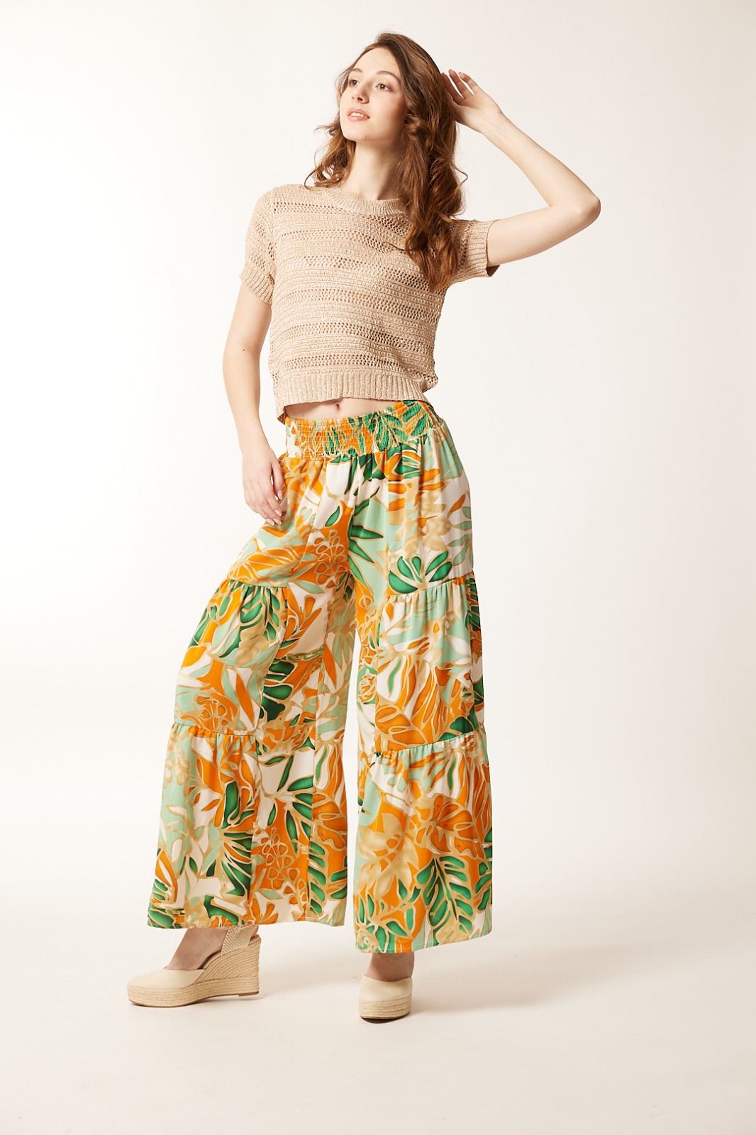 Pantalón Ancho Estampado Naranja Tropical