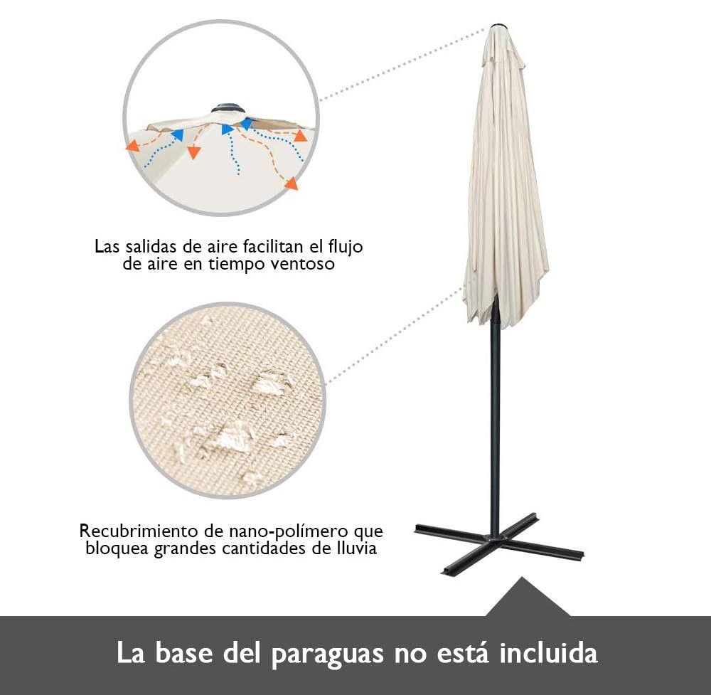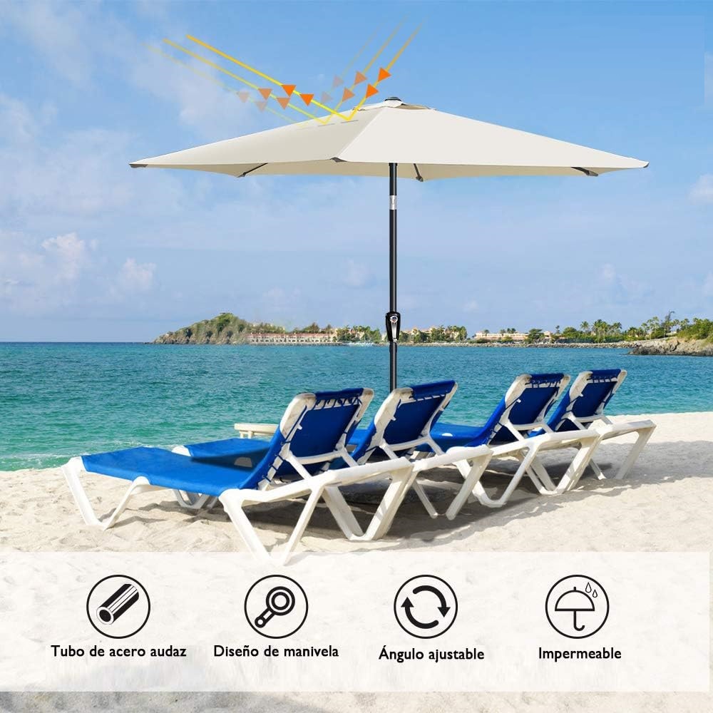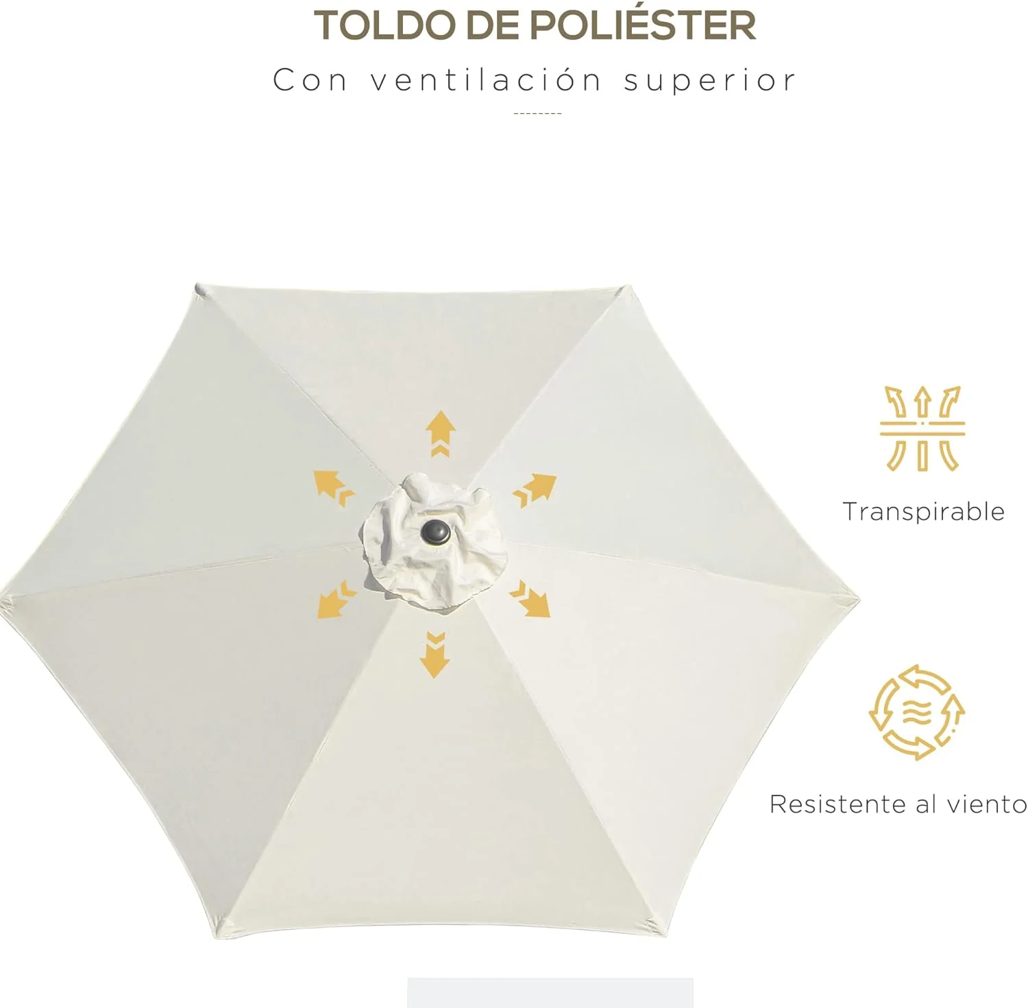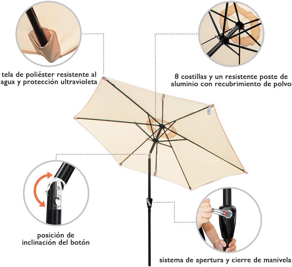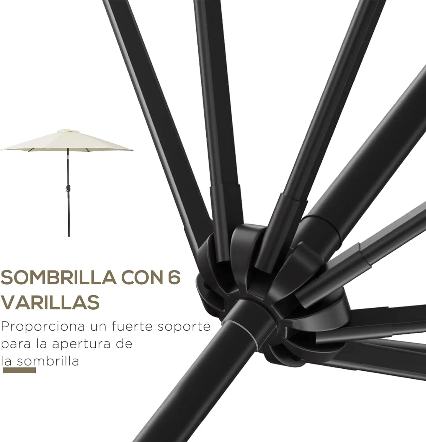 Sombrilla para Exterior – Sombrilla de 270 cm. con 6 varillas – Cierre y Apertura con Manivela