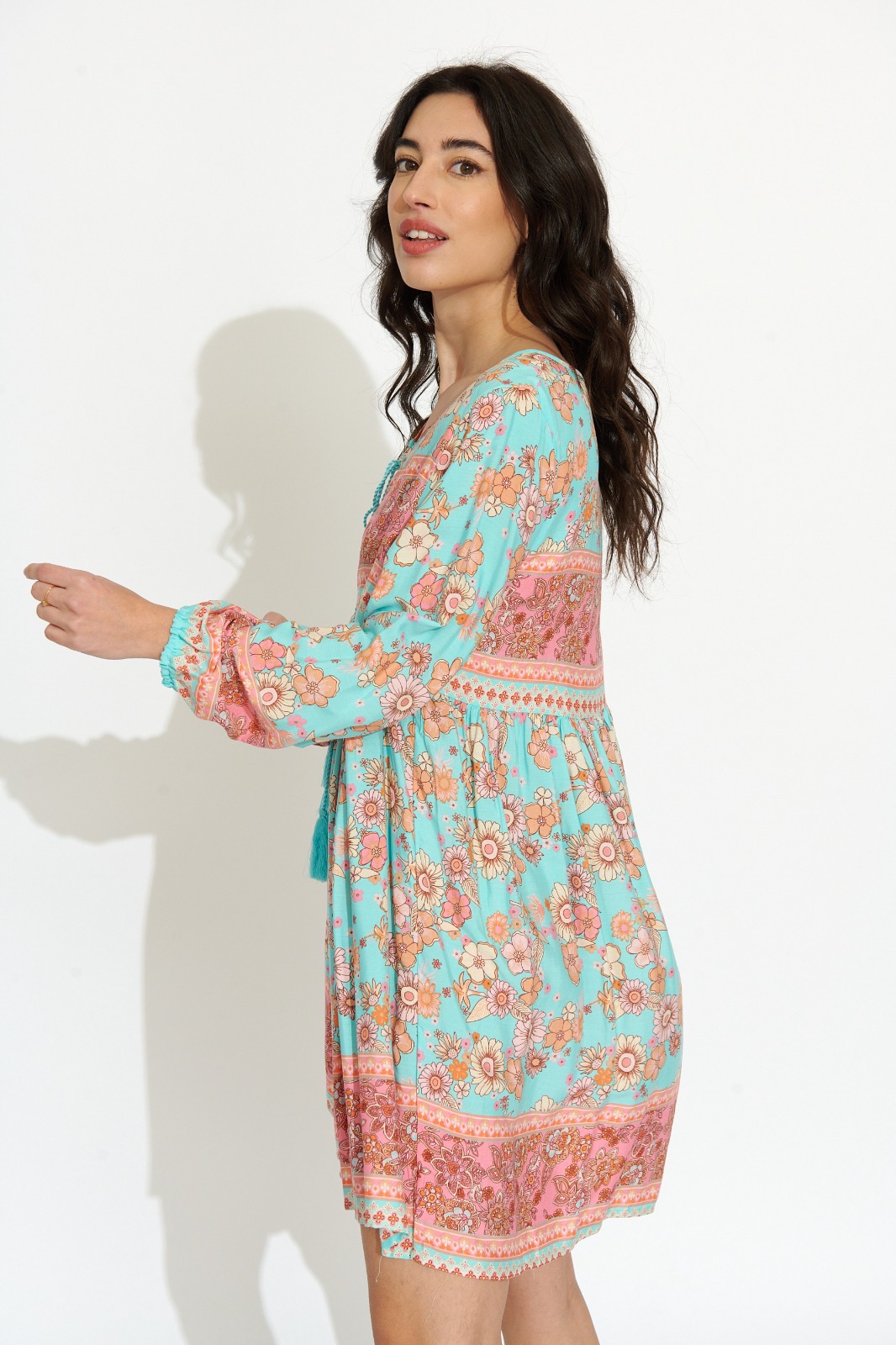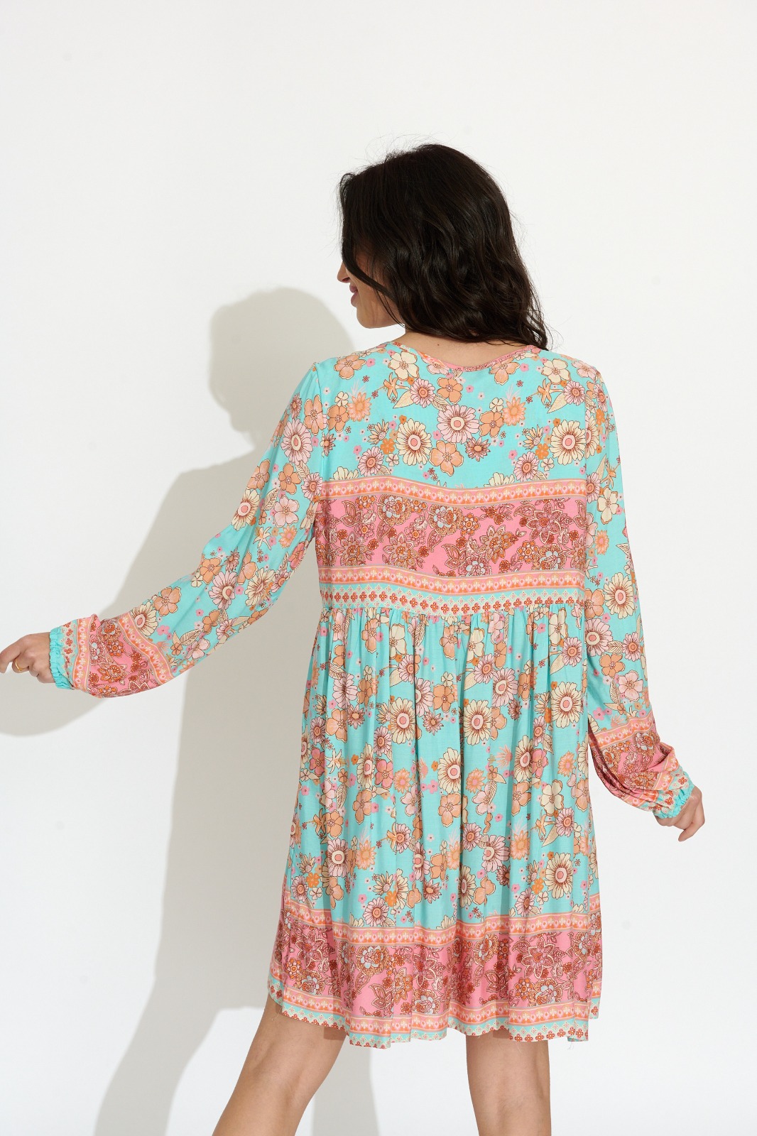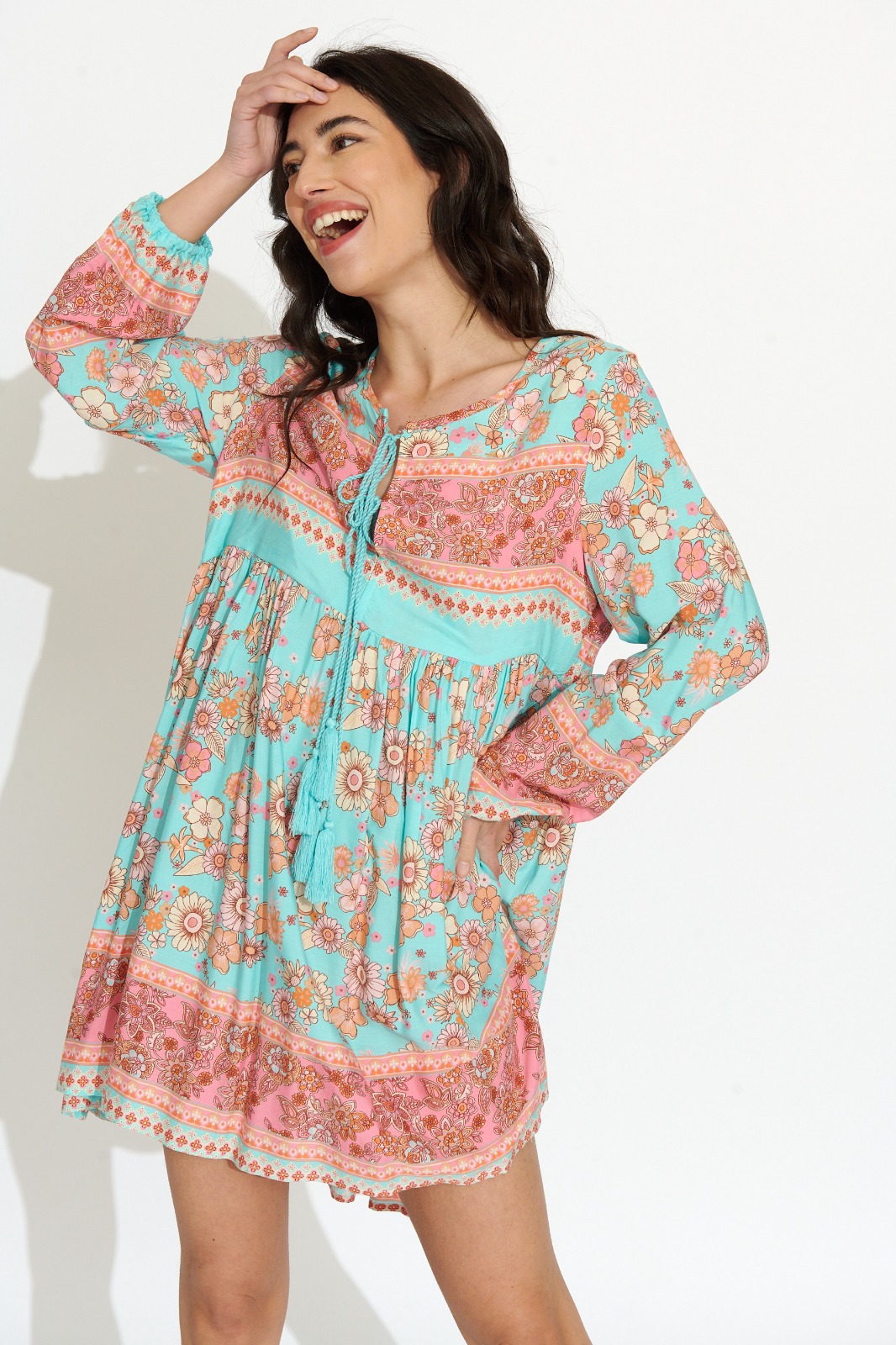 Vestido Corto Azul Claro Estampado Variado