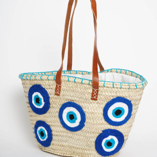 Capazo Ojo Turco Azul de Palma Natural y Lana – Asa de Piel