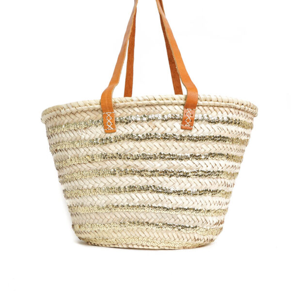 Capazo de Palma Natural con Asas de Piel y Lentejuelas